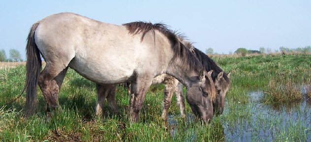 Die extensive Beweidung mit Pferden wirkt sich sehr positiv auf die Amphibienbestände auf einer 30 ha großen Projektfläche mit Laubfroschgewässern aus.