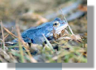 der sich zur Balzzeit blau färbt. In den Randbereichen siedelt der seltene Laubfrosch.