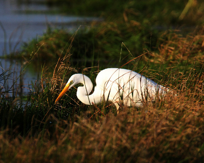 Seit einigen Jahren haben sie jedoch am Dümmer Konkurrenz bekommen, und zwar durch den „großen Bruder“ des Graureihers. Nahezu jeder Besucher der Dümmergegend kennt den Graureiher, der regungslos auf Wiesen steht, um Mäusen aufzulauern, oder still an Gewässern ausharrt, um Fische zu erbeuten, unscheinbar und unauffällig. Meist bemerkt man ihn erst, wenn er davonfliegt.