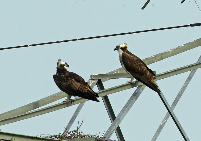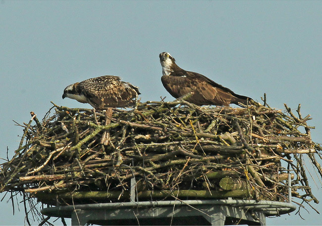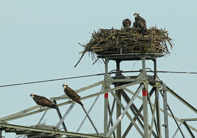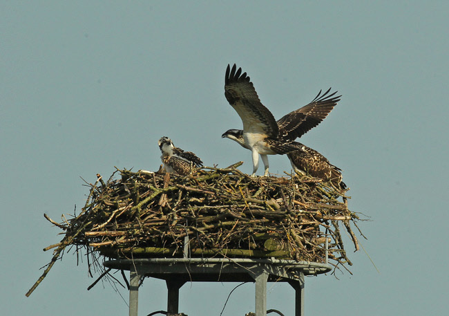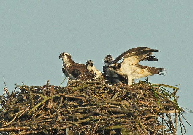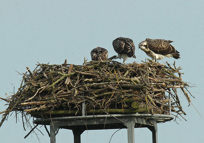 Altvögel mit einem Jungvogel. Gut zu erkennen die Unterschiede im Gefieder bei Alt-