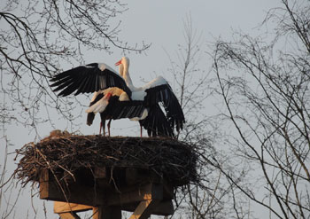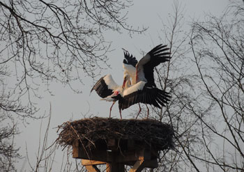 Frösten eroberte Mitte März das traditionelle Brutpaar den Horst am Naturgarten bei