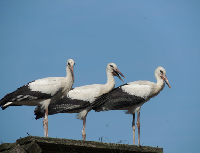 Quietschnasse Störche, alt und jung. (Foto: J. Podgorski)