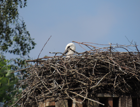 der Naturschutzstation. Zunächst hatten darauf "fremde" Störche Platz genommen. Der
