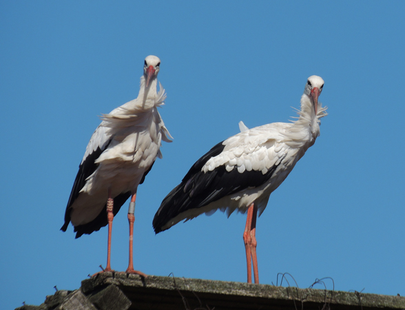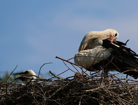 Wieder vereint: das traditionelle Storchenpaar am Naturgarten.