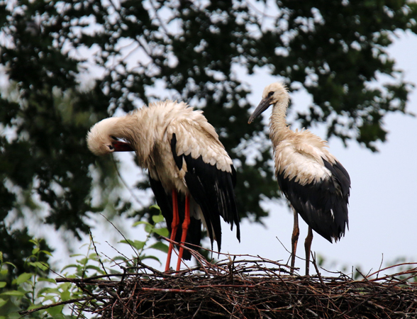 Das traditionelle Storchenpaar am Naturerlebnisgarten kehrte schon im Februar aus dem Winterquartier ins Dümmergebiet zurück Trotz einer frühen Ankunft im Gebiet wurde erst ab Mitte März mit der Brut begonnen. Der Schlupf der Küken erfolgte Mitte April. Die Aufzucht verlief ohne größere Komplikationen, allerdings mussten die drei Jungvögel kühle Temperaturen und häufige Niederschläge ertragen. Bisher ist noch kein Jungvögel ausgeflogen.