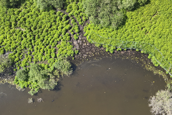 Vegetation, links im Bild ungesicherte, mosaikartie sich auflösende Bereiche -