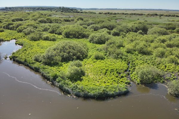 Die 2024 eingerichteten Schutzbereiche haben sich innerhalb eines Jahres interessant entwickelt. Es hat sich innerhalb der Gitter artenreiche Vegetation eingestellt und die umzäunten Bereiche sind üppig bewachsen. Außerhalb des Schutzes löst sich die Vegetation und sogar die Verlandungszone weiter mit großer Geschwindigkeit auf.