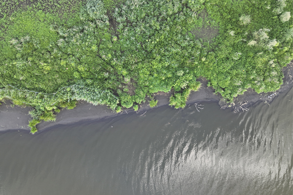 Auch hier der Vergleich: rechts im Bild Ufersicherung durch Gabionengitter mit geschlossener