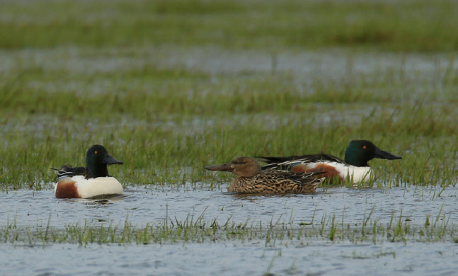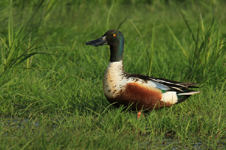 Ab März ist die Löffelente sowohl auf überschwemmten Wiesen als auch auf dem See zu finden. Dann trägt sie ihr farbenfrohes Brutkleid. Auf den nassen Flächen wird auch gebrütet, deshalb zählt die Ente zu den Wiesenvögeln.