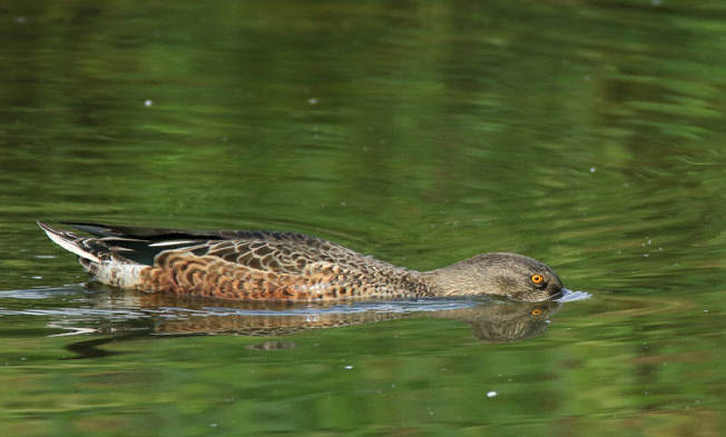 Filtern voller Hingabe: der Schnabel taucht bis knapp unterhalb des Auges ins Wasser. Im Spätsommer und Herbst treffen viele Hundert Vögel am Dümmer ein. In großen Gruppen schwimmen sie flach auf dem Wasser und schnorcheln sich durch den See.